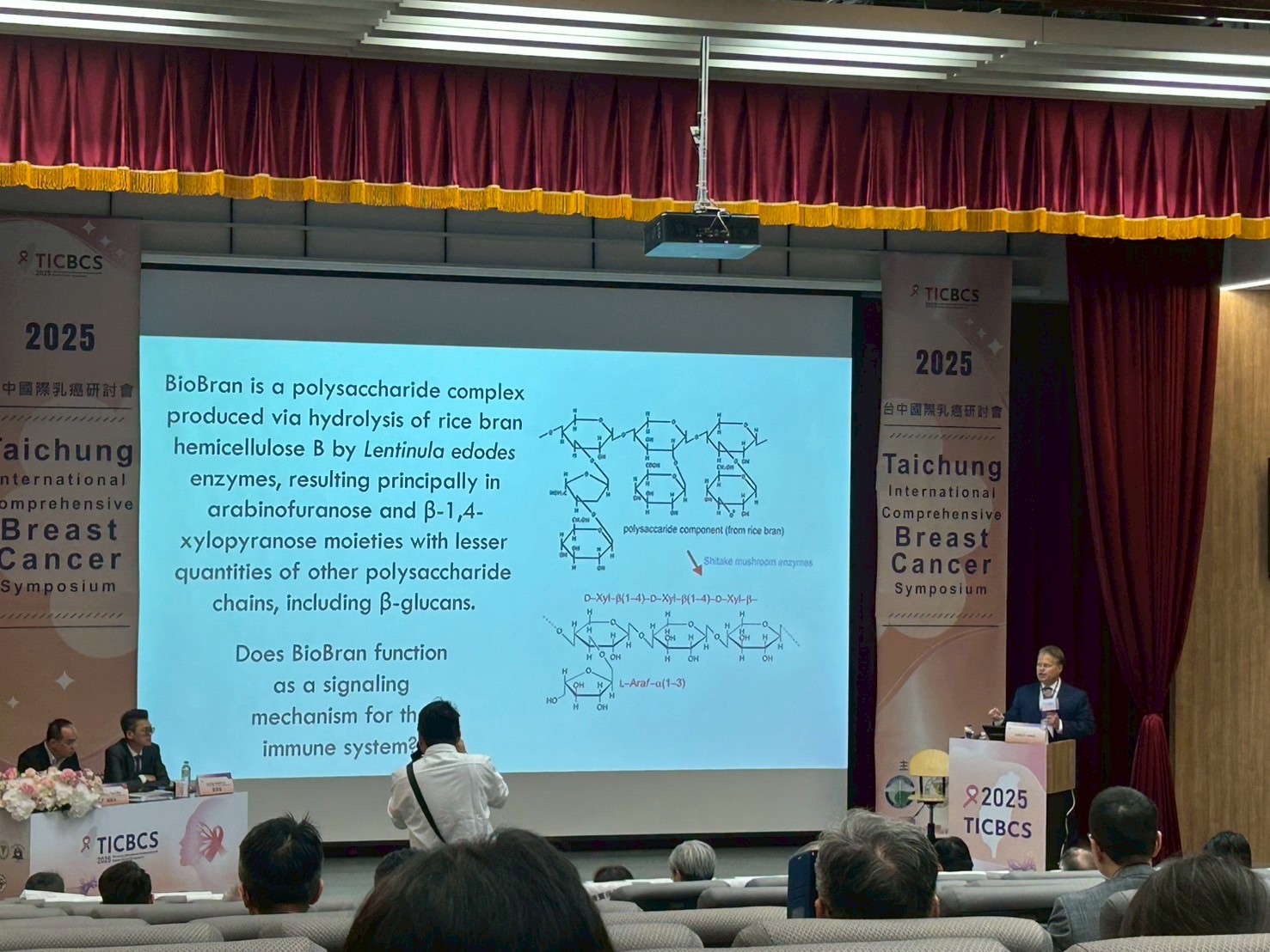 Dr. Lewis 針對 BioBran 在免疫調節、疲勞改善、生活品質提升等方面的研究進展進行分享,提出其可能作為癌症治療輔助營養策略的重要性。